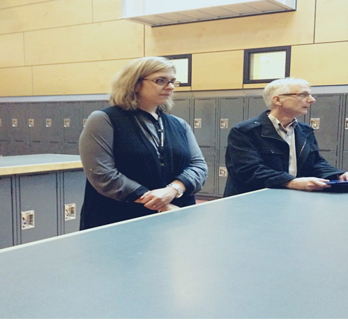 图上这位女士是列治文市Mcmath 中学的副校长,她给我带来了极大的震撼:在她带领我们参观这所有着1200多人的学校途中,每个经过她身边的学生,她都能准确地叫出名字,并与他们亲切地交谈,了解孩子们的学习与生活情况。我对她的敬佩之情油然而生!而列治文市各所学校的老师学生们却认为这是很普通的事,在他们看来,这是师生互相尊重的最基本要求。原来,在列治文市不能叫出全校学生名字的人被认为是不够资格做校长的!互相尊重的核心价值观在这看似小小的举动中得以充分体现!心中除了敬佩还是敬佩!
