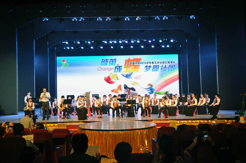 管乐团成立于2009年,在管乐艺术教育活动中,学校紧紧依靠家长及社会力量,形成艺术教育的共识与合力,学校拥有一支勤奋敬业、技术精湛的校内外专家教师队伍,现在乐团已经发展成为阶梯模式。乐队声部完整、器材配备齐全。