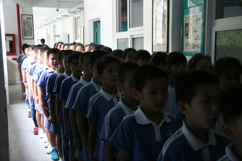 In order to further strengthen the development of students’ behavior, improve the classroom efficiency and promote inter-class learning and communication, Grade one and Grade four of BaochengPrimary Schoolcarried out regular teaching exhibition competition in the afternoon of 29th, September, in the unit of class. Grade one carried “one stop two silence” contest, Grade Four carried out queue exhibition contest.