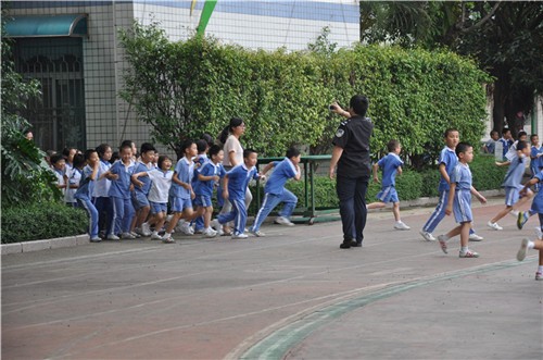 At 4 o'clock, after the alarm sounded, the students quickly and orderly escaped from the classroom to the empty playground under the guidance of teachers, which lasted 2 minutes and 50 seconds. In the process, all the students put the drill seriously as they evacuate quickly with bending, covering their noses. It reflected the spirit of cooperation and mutual assistance. Finally, the instructor Dong of the Zhennan police station made a comment on the activities and shared some cases with the students : to remind teachers and students to brand safety awareness in the bottom of heart, "Do you know where is the security exit of the supermarket?" "Are your flammable items in your house where easy to catch fire?"