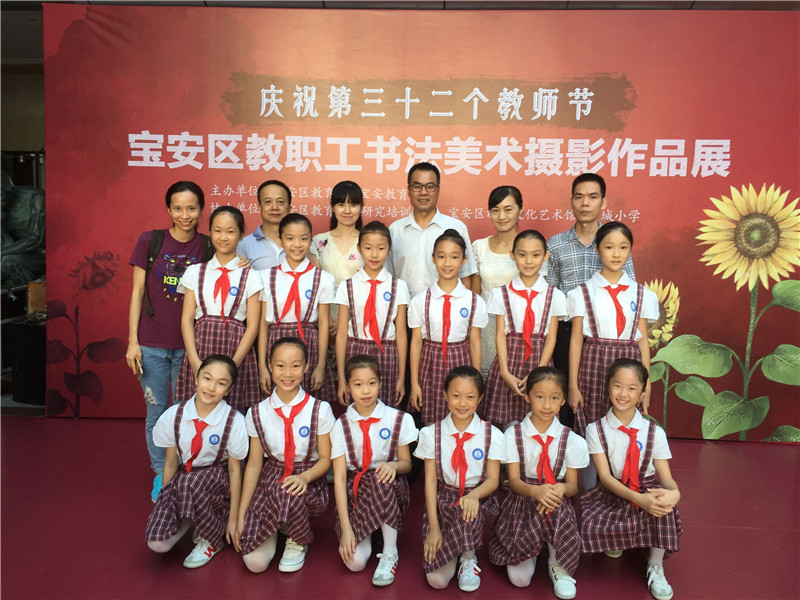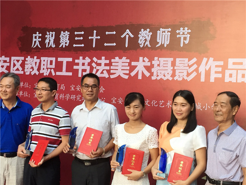 “Celebrating the 32nd Teachers Day” is a calligraphy, art and photography works exhibition contest of Bao’an teaching and administrative staff which was hosted by Bao’an Education Bureau. As the organizer of this contest, our school assisted the organizing committee to receive manuscripts, review and exhibit. We also encouraged teachers to contribute actively. Among all the works, photography Auspicious Snow and Harvest Year, from Lin Xiyu , won first prize. Chinese painting The Archaic Rhyme of Shady Banyan, from Cai Jinping, won first prize. Chinese painting Spring Trip, from Chen Shouying, won first prize. Chinese painting Ethereal Smoothness, from Zhan Zhengui, won first prize. Calligraphy Regular Script’s Horizontal Scroll, from Sun Dan, won first prize. Watercolor Looking, from Li Qianying, won second prize. Chinese painting Staring, from Wei Ling, won second prize. Calligraphy One Poem of Tang Dynasty, from Cai Jinping, won second prize. Photography Helpless and Chaotic, from Chen Chunwan, won third prize.