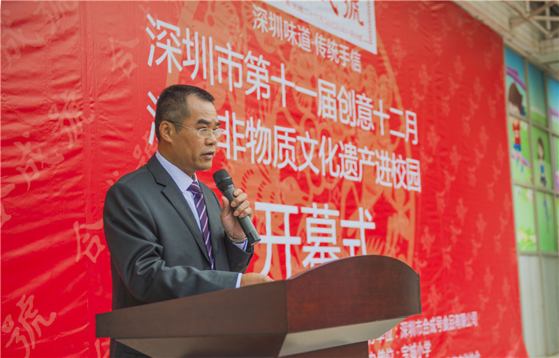 Protection Association, Wang Chengtai, curator of Shenzhen Public Art Center, Liu Mingjun, headmaster of Shenzhen Baocheng Primary School, Lin Xiyu, chairman of Heng Yu Bright Express, Chen Helin, president of Bao’an traditional culture association,Chen Ganzhong and so on. All the leaders and guests launched Shenzhen intangible cultural heritage “Shenzhen (He Cheng) Traditional Snack Production Skill Teaching Base”.