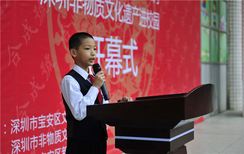 Then there was the opening ceremony. After raising the national flag, Chen Ganzhong, the president of Bao’an traditional culture association gave an address. The headmaster of Baocheng Primary School, Lin Xiyu, made a speech. The student representative, Liu Junhan, made a speech. The president of Shenzhen commercial association, Zhuang Lixiang, made a speech. There are also other guests, including vice director of the Standing Committee of Shenzhen Bao’an District, Liu Yinghong, former director of the Standing Committee of Shenzhen Bao’an District, He Zhihong, former director of Shenzhen Tourist Administration, Chi Xiongbiao, former director of Shenzhen Department of Transportation, Liu Zhijiao, former director of Shenzhen Justice Bureau, Huang Zhenfen, president of Shenzhen business holding company, Feng Yulin, director of Bao’an Working Committee for the Care of