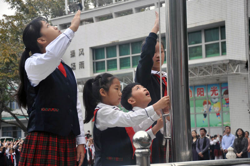 我悄悄来到校园,把白云宝宝全部吹散,让小朋友们都缩进棉褂褂。