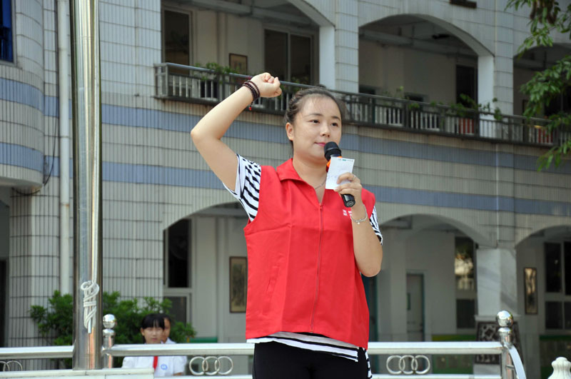 活动当天黄健华副校长介绍家长义工队成立的目的,宣布“一年级家长义工服务队”正式成立,并介绍6位家长义工代表。接下来bet36365体育手机版新任校长黄新萍为家长义工队授旗并热情洋溢地勉励大家和衷共济,相扶相携,同心协力,共同托起宝城明天的太阳,号召全体师生和家长共同用“爱心、耐心、责任心”构建宝城美好的未来。操场上顿时响起热烈的掌声!最后,家长义工代表带领家长义工队队员集体宣誓——“一心一意为宝城的发展甘于奉献,不计报酬……”